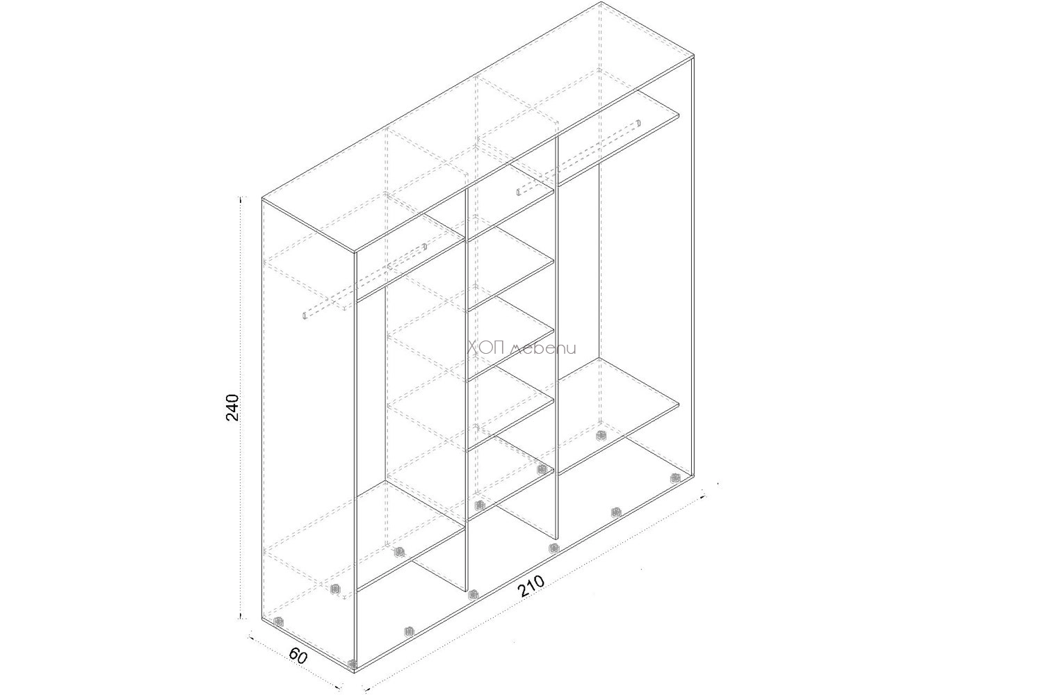 - височина 240 см / дълбочина 60 см / дължина 210 см
