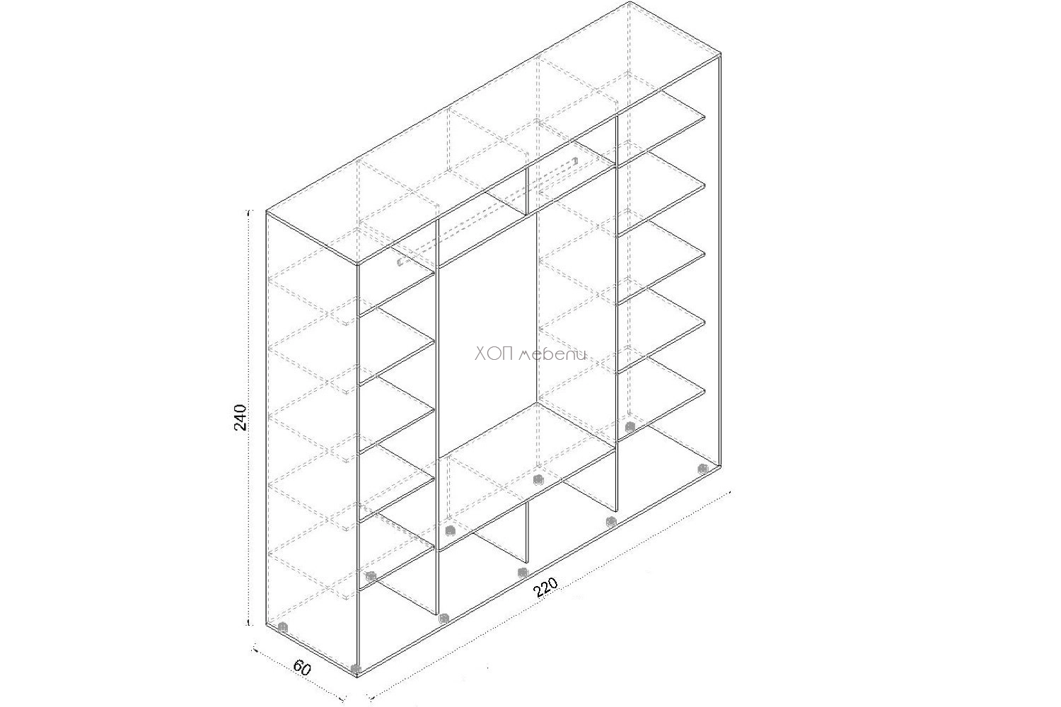 - височина 240 см / дълбочина 60 см / дължина 220 см