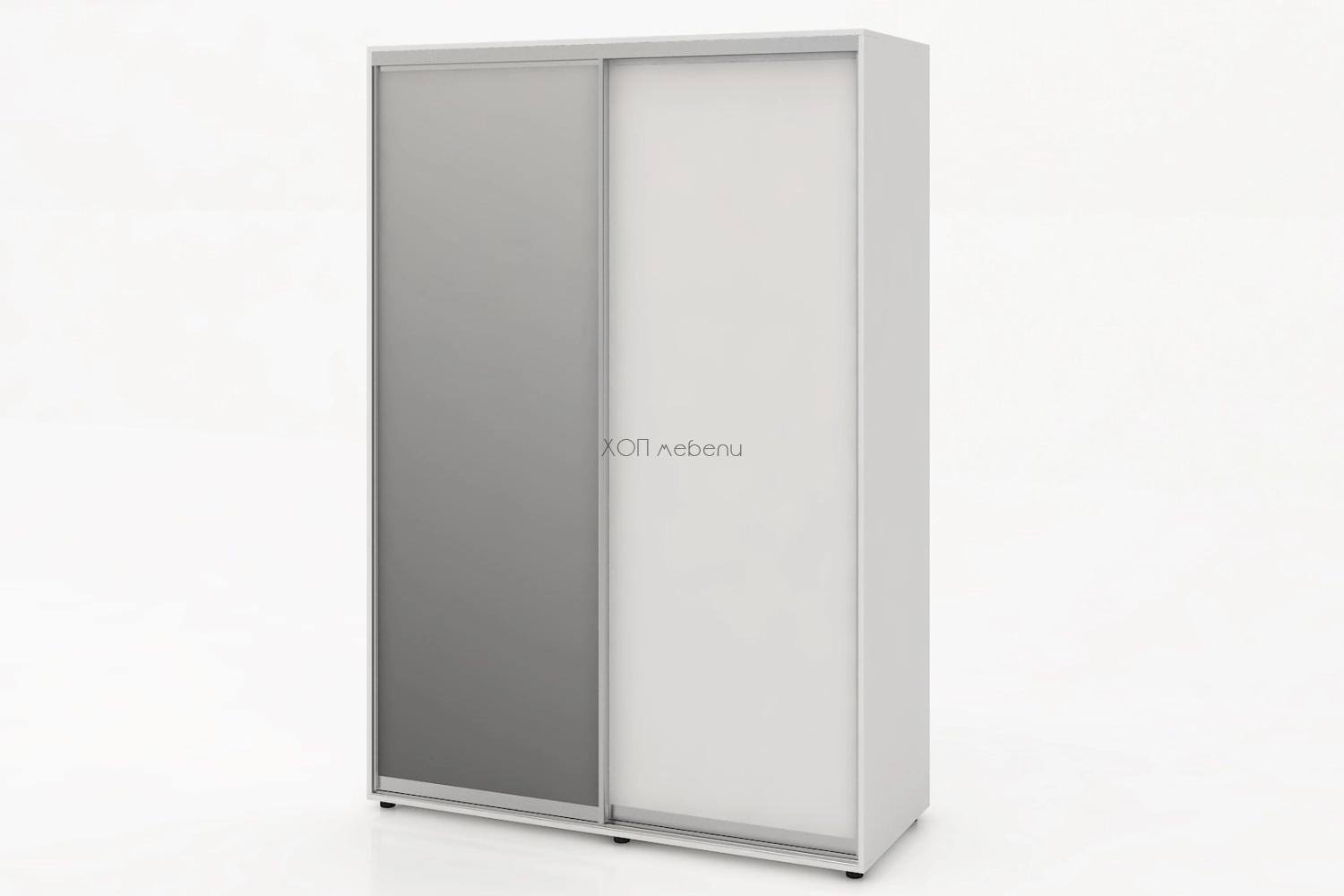 Тази конфигурация на гардероб Алфа е в цвят бяло с една плътна и една огледална врата.