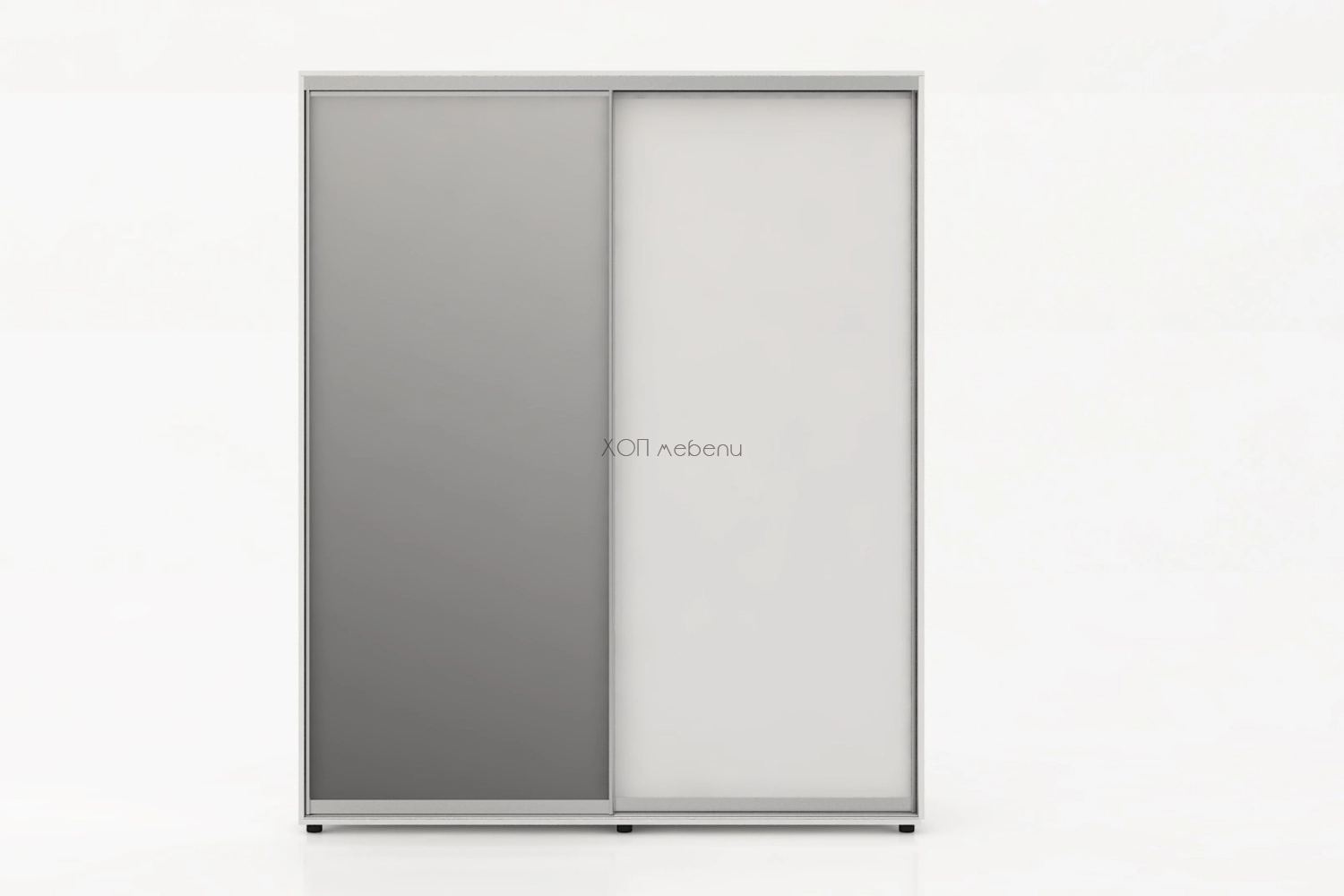 Тази конфигурация на гардероб Алфа е в цвят бяло с една плътна и една огледална врата.
