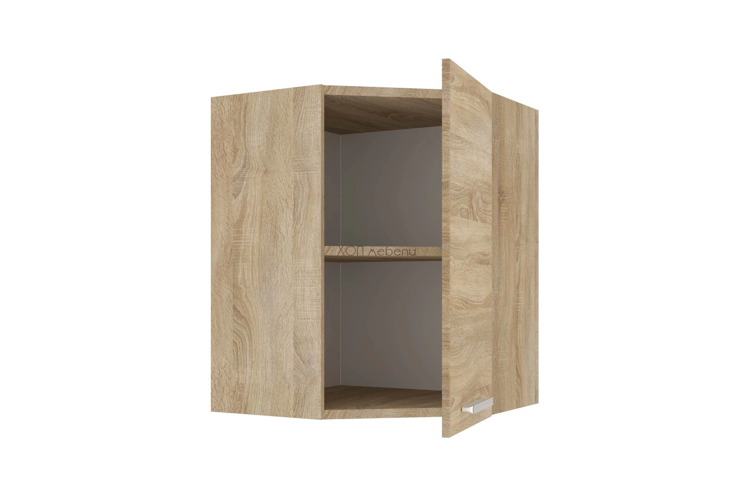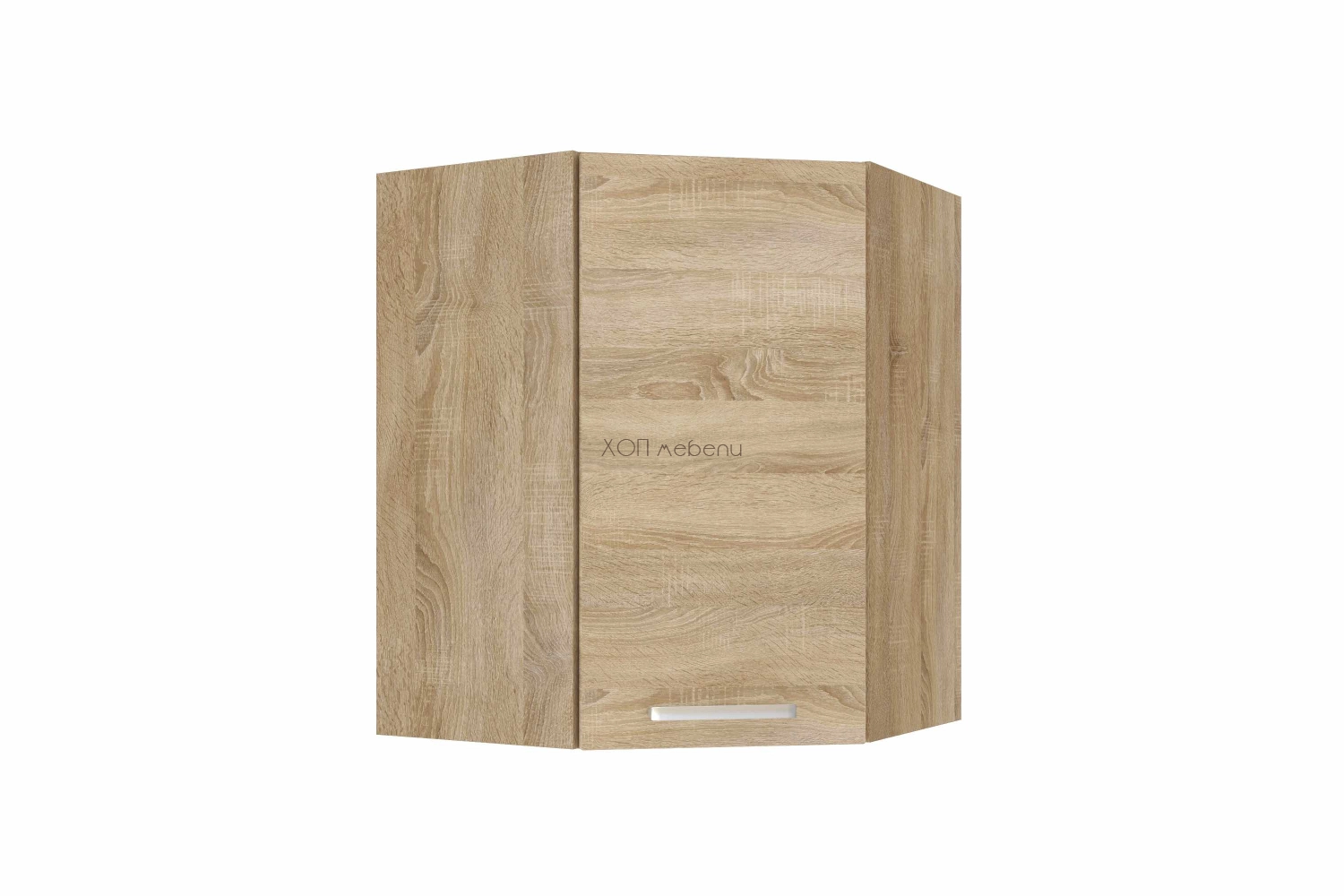 Горен ъглов кухненски шкаф Алина в цвят сонома. С една врата и рафт.