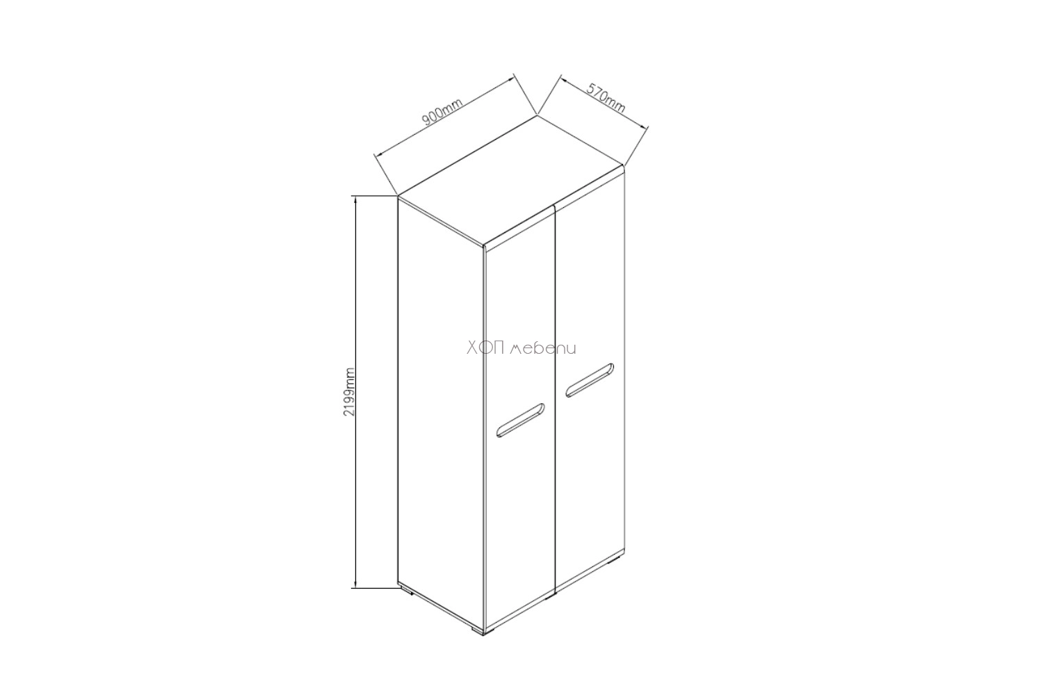Гардероб с две врати, шест рафта и лост за закачалки. В бял гланц и апалачи, които разширяват визуално пространството и лесно кореспондират с всеки интериор.