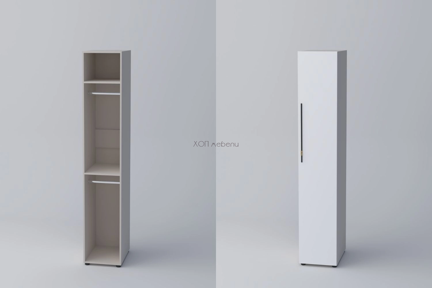 Еднокрилен гардероб СПЕЙС 2 с височина 220 см. и ширина 40 см. Удобно разпределение и компактни размери. Гардеробът разполага с два лоста за закачалки и два рафта.