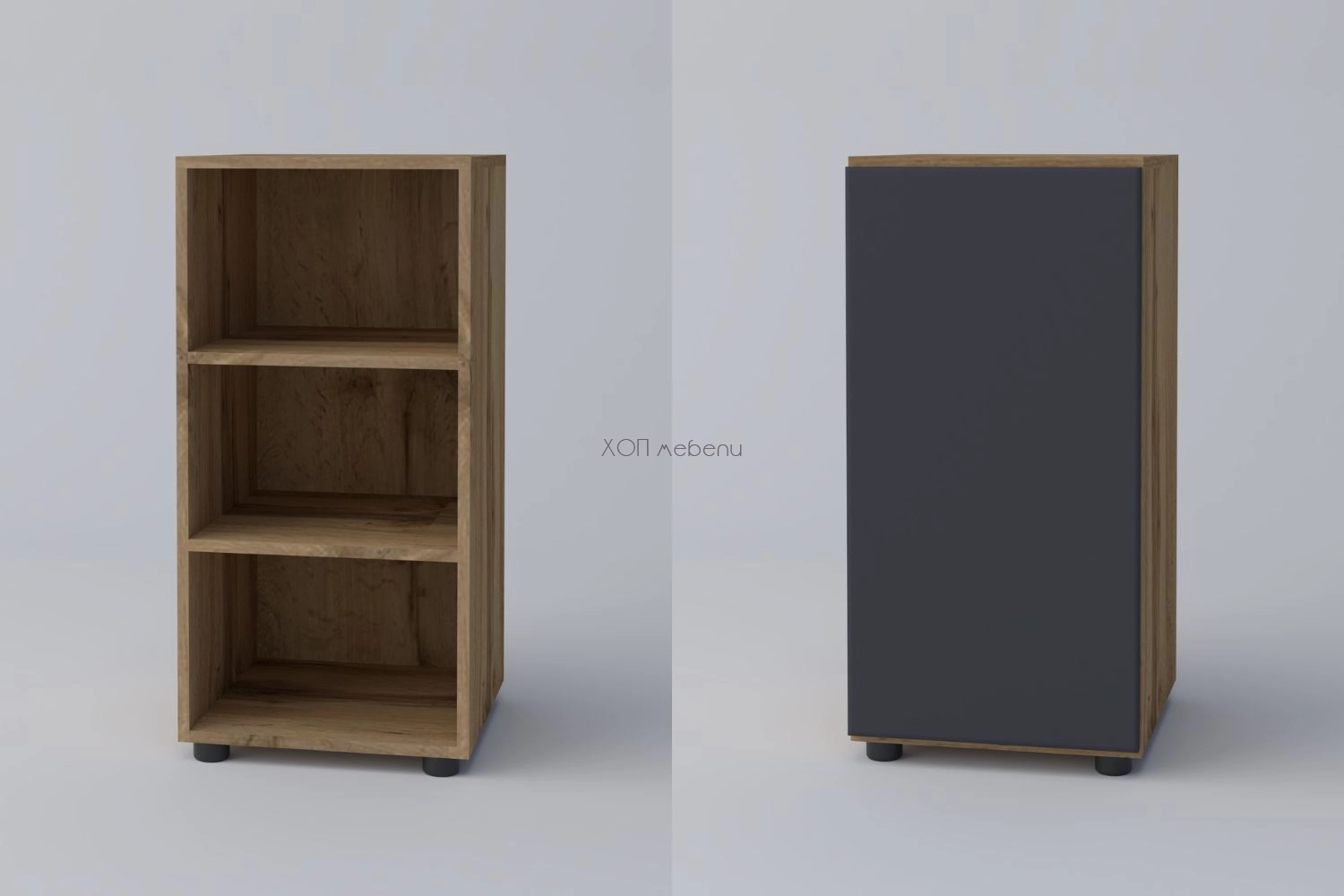 Удобен и компактен шкаф с една врата и два рафта. Част от модулна система СПЕЙС в графит и корпус дъб апалачи. Чудесно решение за детската стая, антрето, спалнята, всекидневната или домашен работен кът.