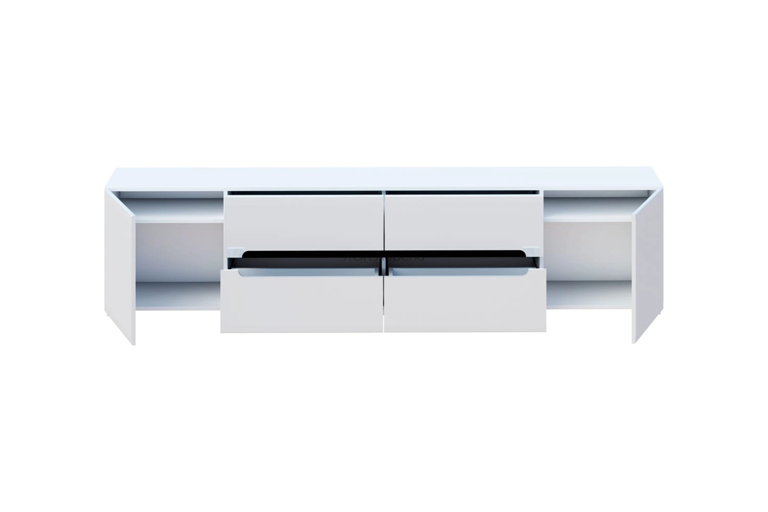 2. Шкаф за телевизор с две врати и четири чекмеджета, който има достатъчно място за различни размери телевизори, мултимедия, документи и дребни вещи.
