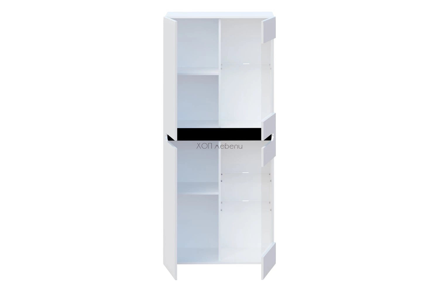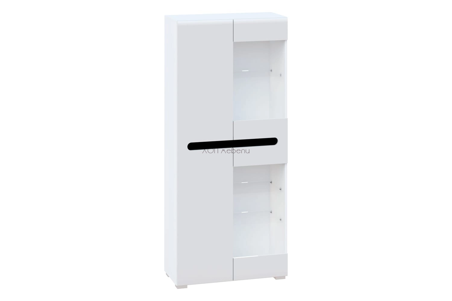 1. Висок шкаф, подходящ за книги и чаши, с плътна и стъклена врата - модул за секция Бианко 2Д Висок.