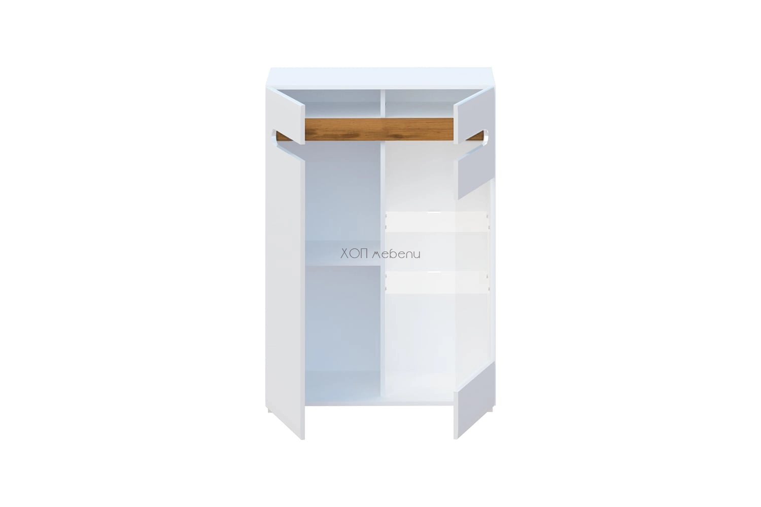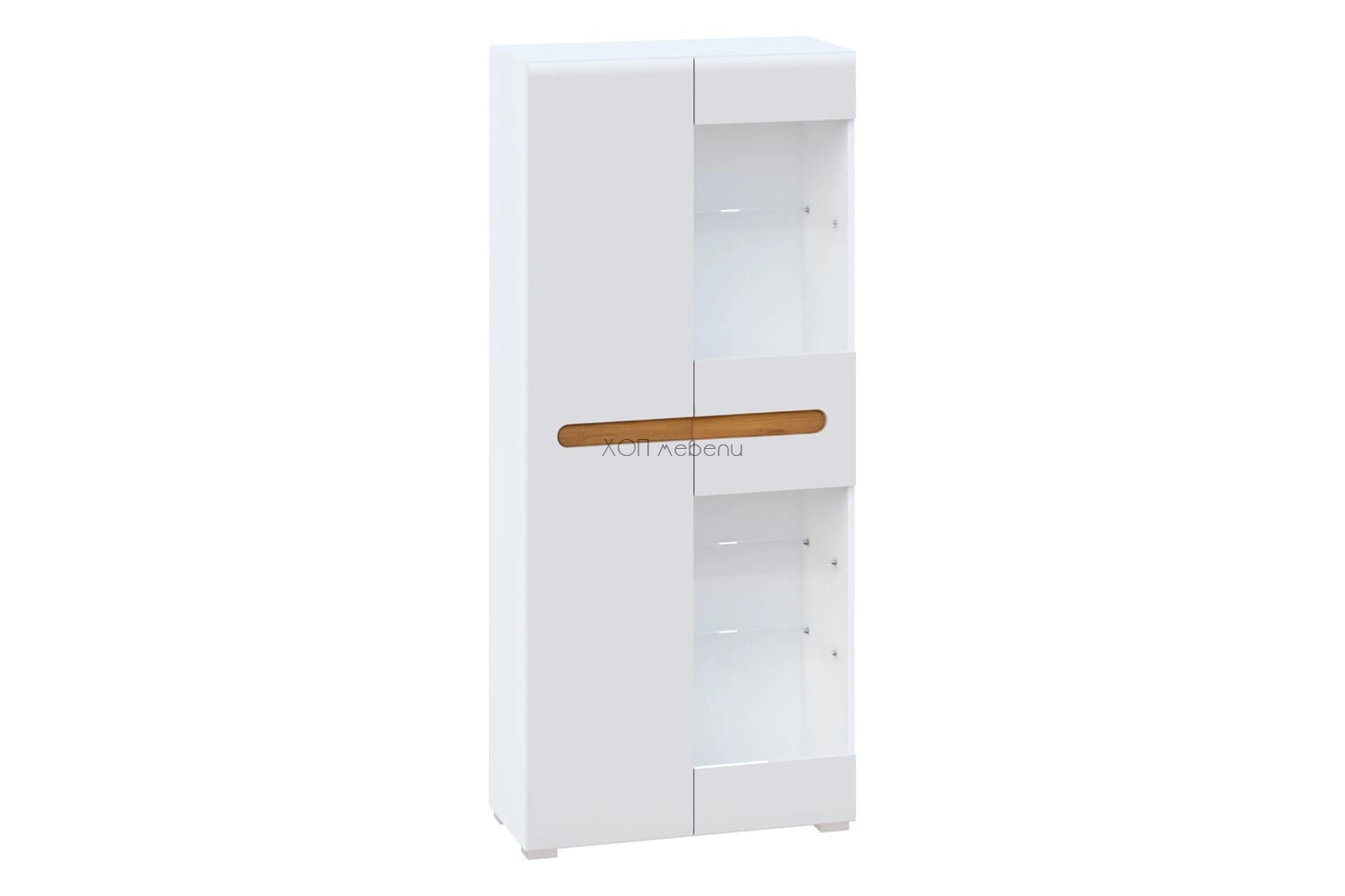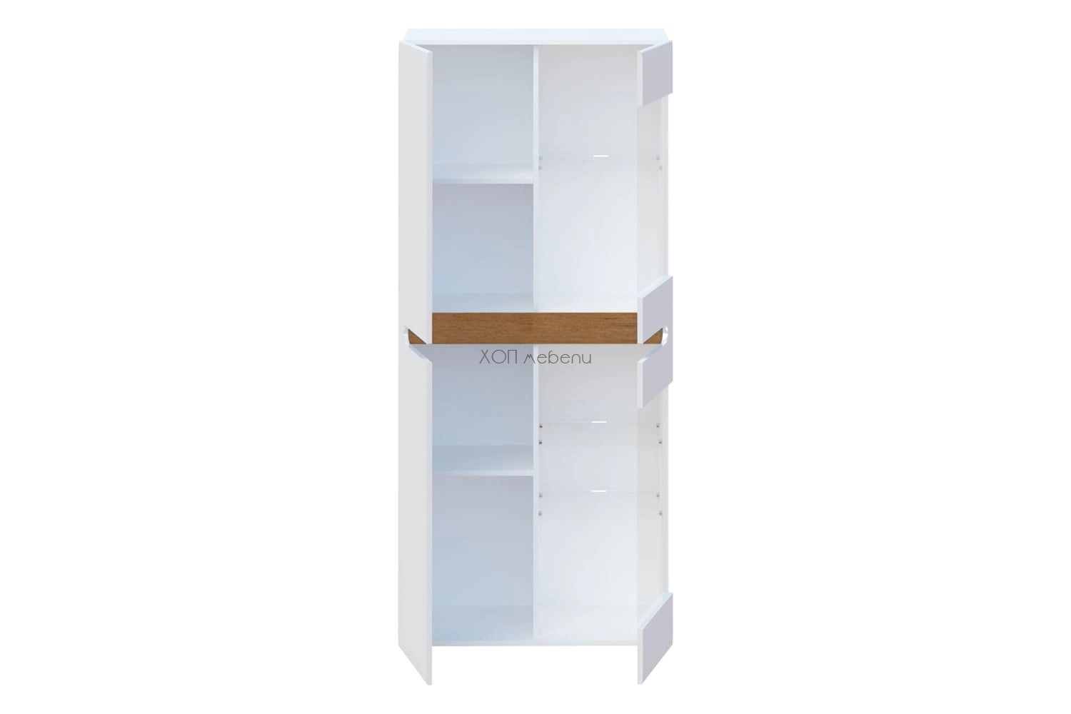 1. Висок шкаф, тип библиотека и витрина с две врати - стъклена и плътна - модул за секция Бианко NEW 2Д СК Висок.