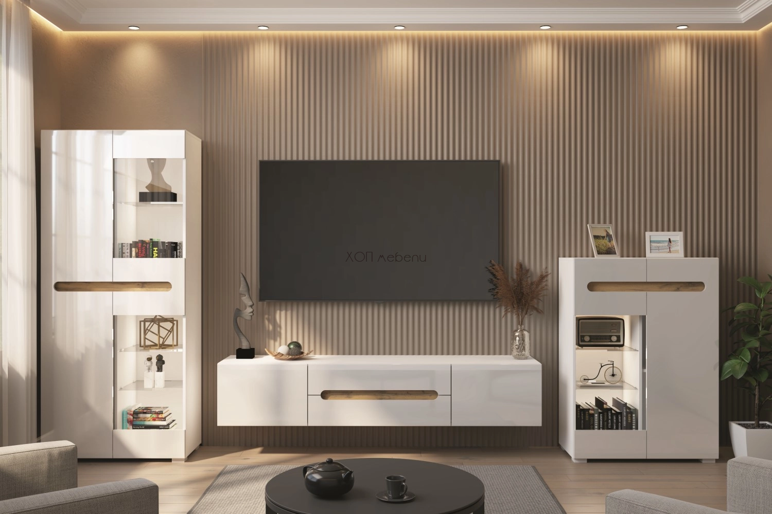 Модулна секция Бианко Компакт е перфектна за малки дневни или хол с бокс.