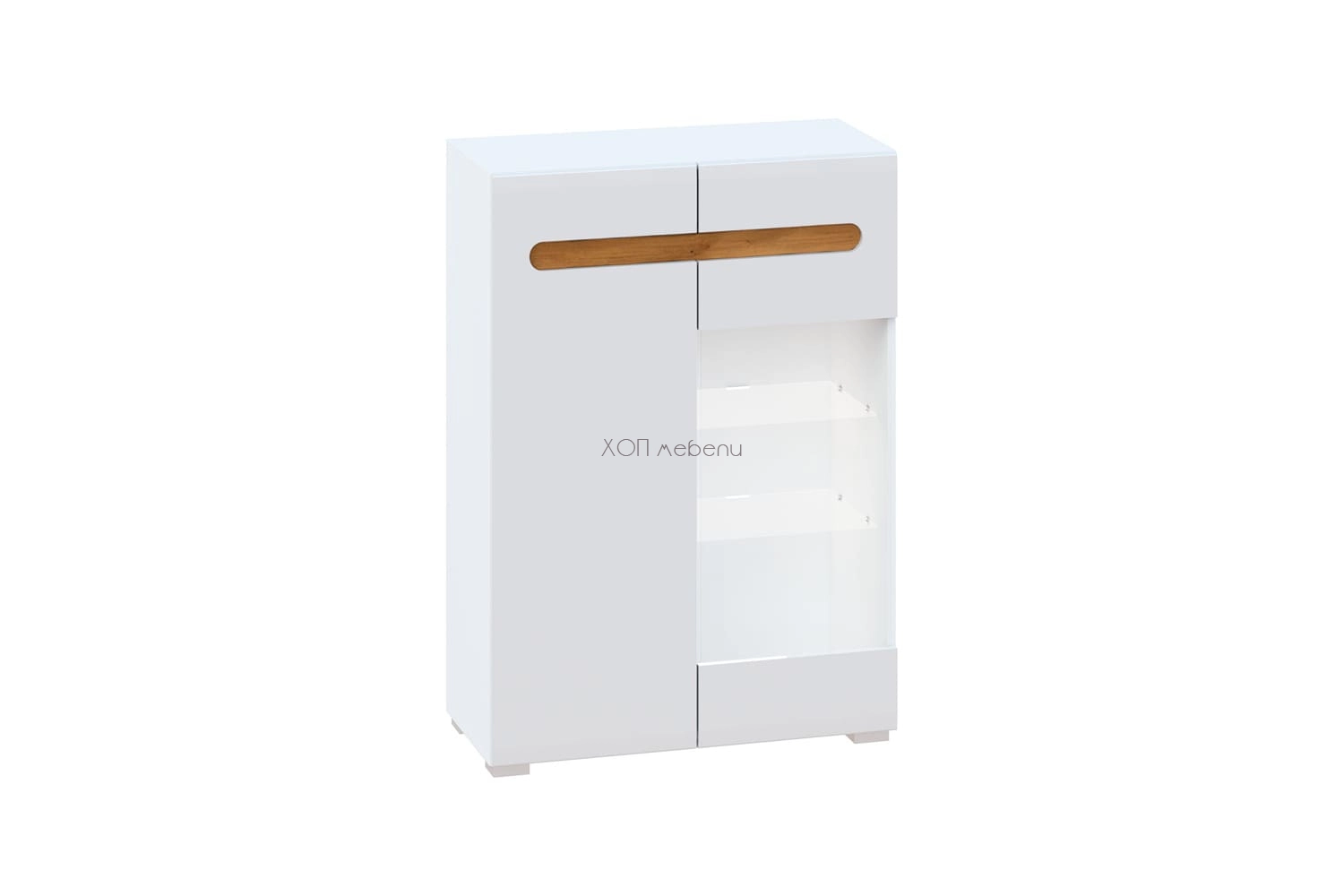 3. Нисък шкаф с витрина и плътна врата. Модул 2Д СК нисък е с много рафтове и елегантна визия, която чудесно кореспондира с всеки интериор.