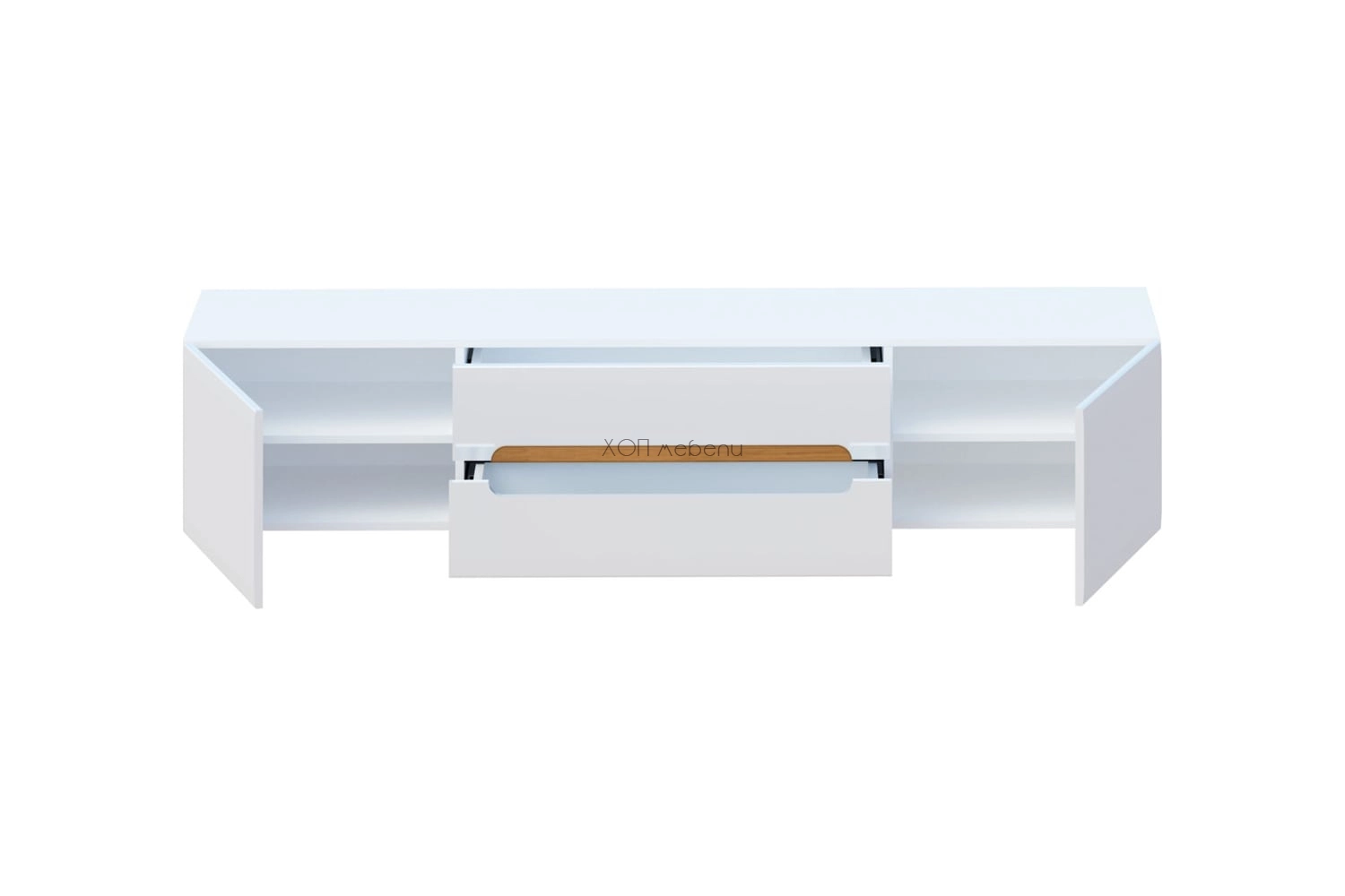 2. Шкаф за телевизор с дължина 180 см., за монтаж на стената. С висящия ТВ шкаф ще имате повече свободно пространство. Модулът разполага с две врати и две чекмеджета.