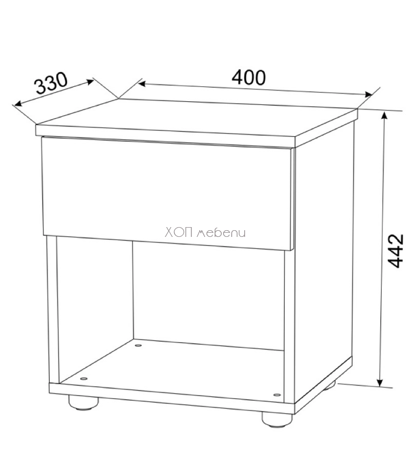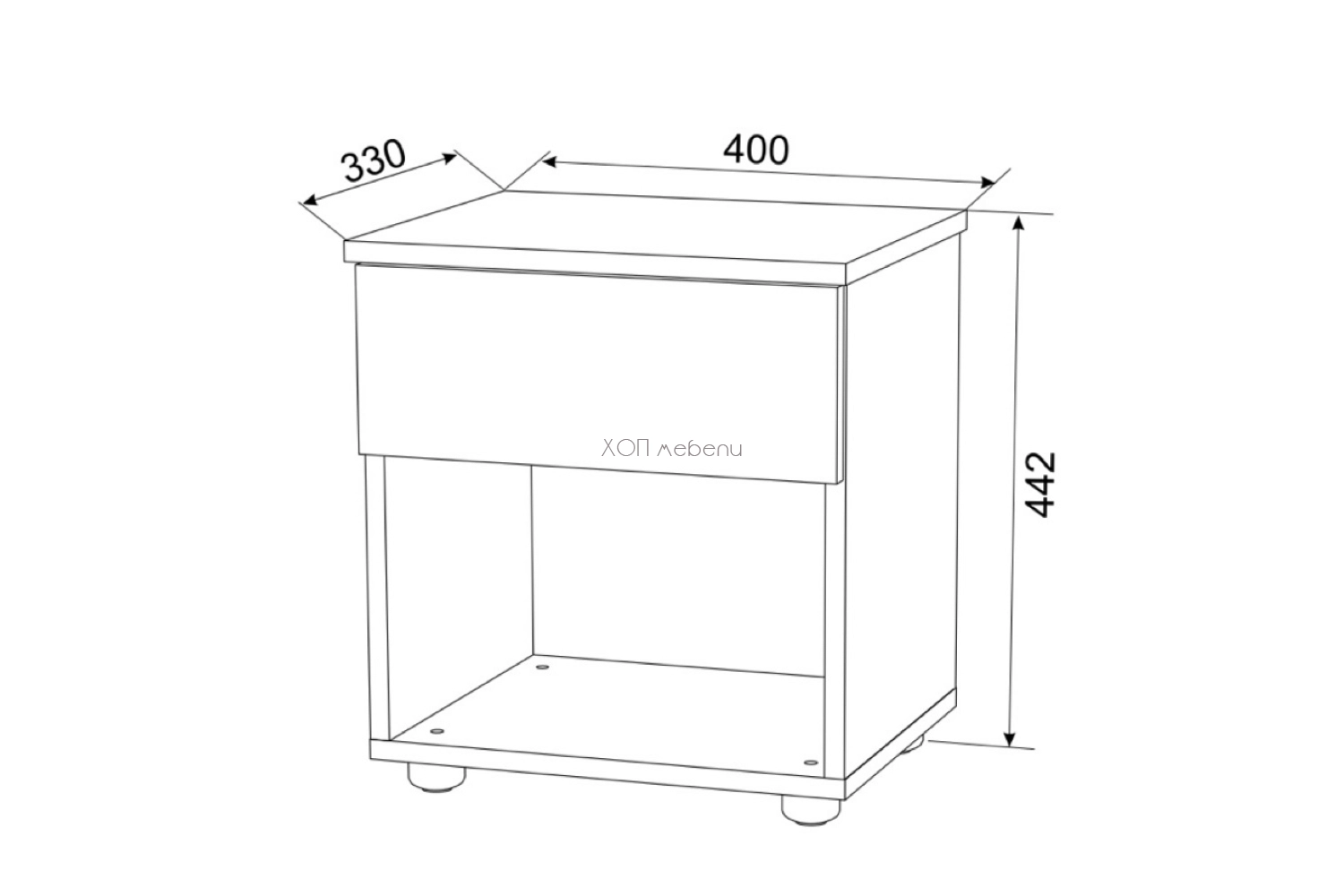 нощно шкафче ПКТ 8 нощното шкафче располага с едно чекмедже и голяма ниша