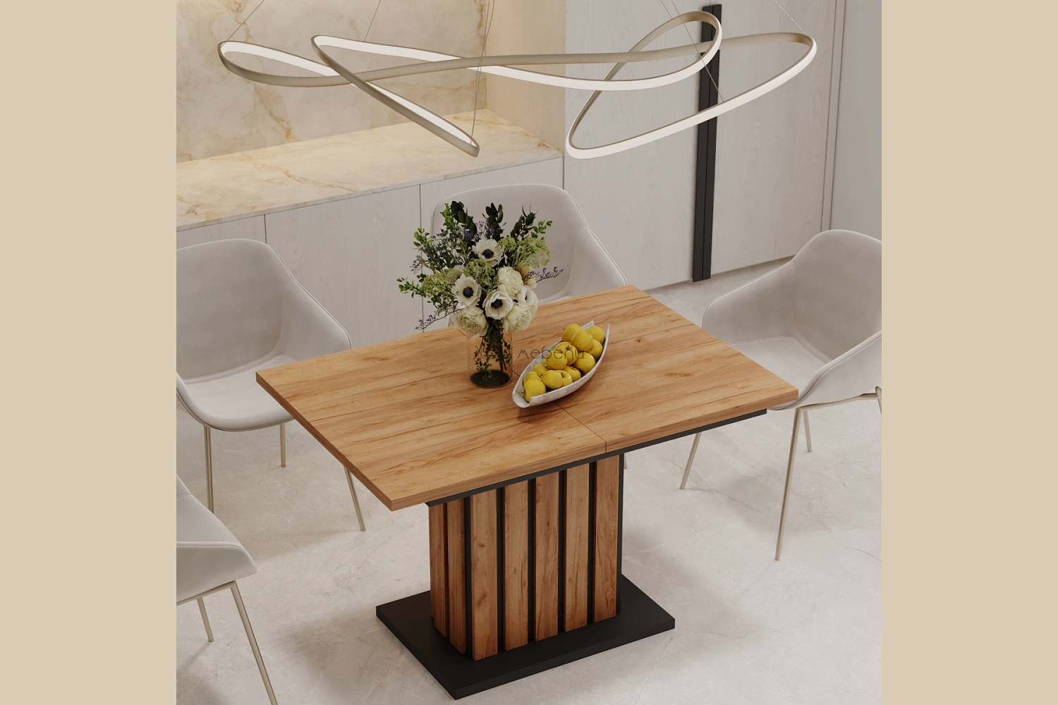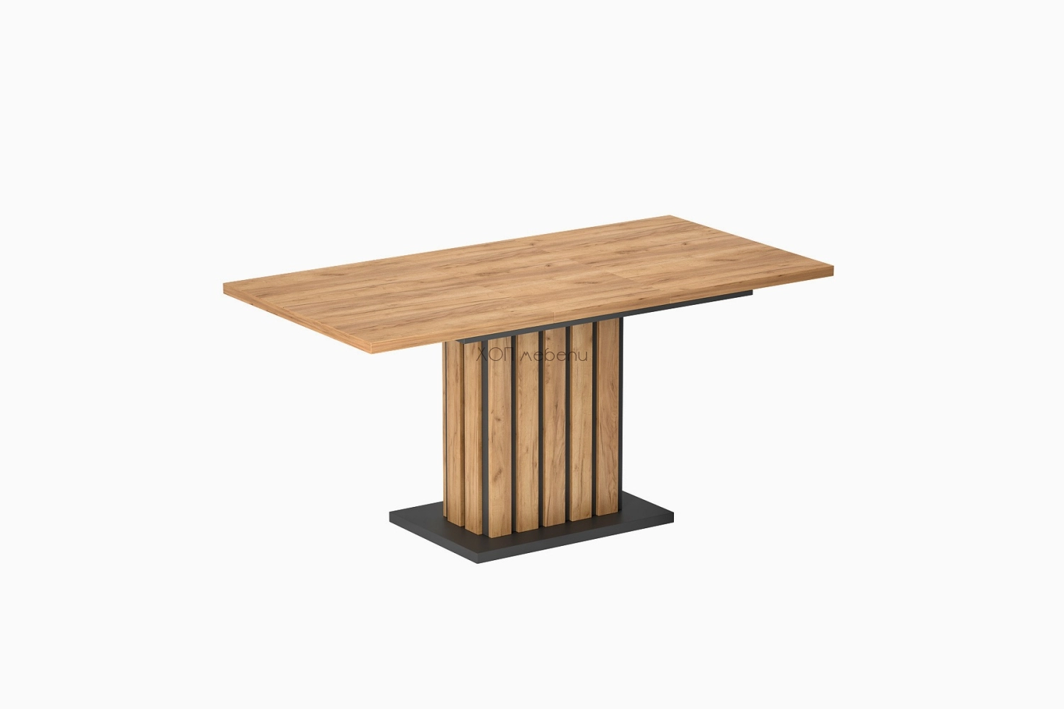 Разтегателна трапезна маса Оксфорд е чудесна за трапезарията или комбинираното помещение на трапезария и всекидневна. В комбинация от топъл дървесен цвят дъб златен и модерен сив цвят графит.