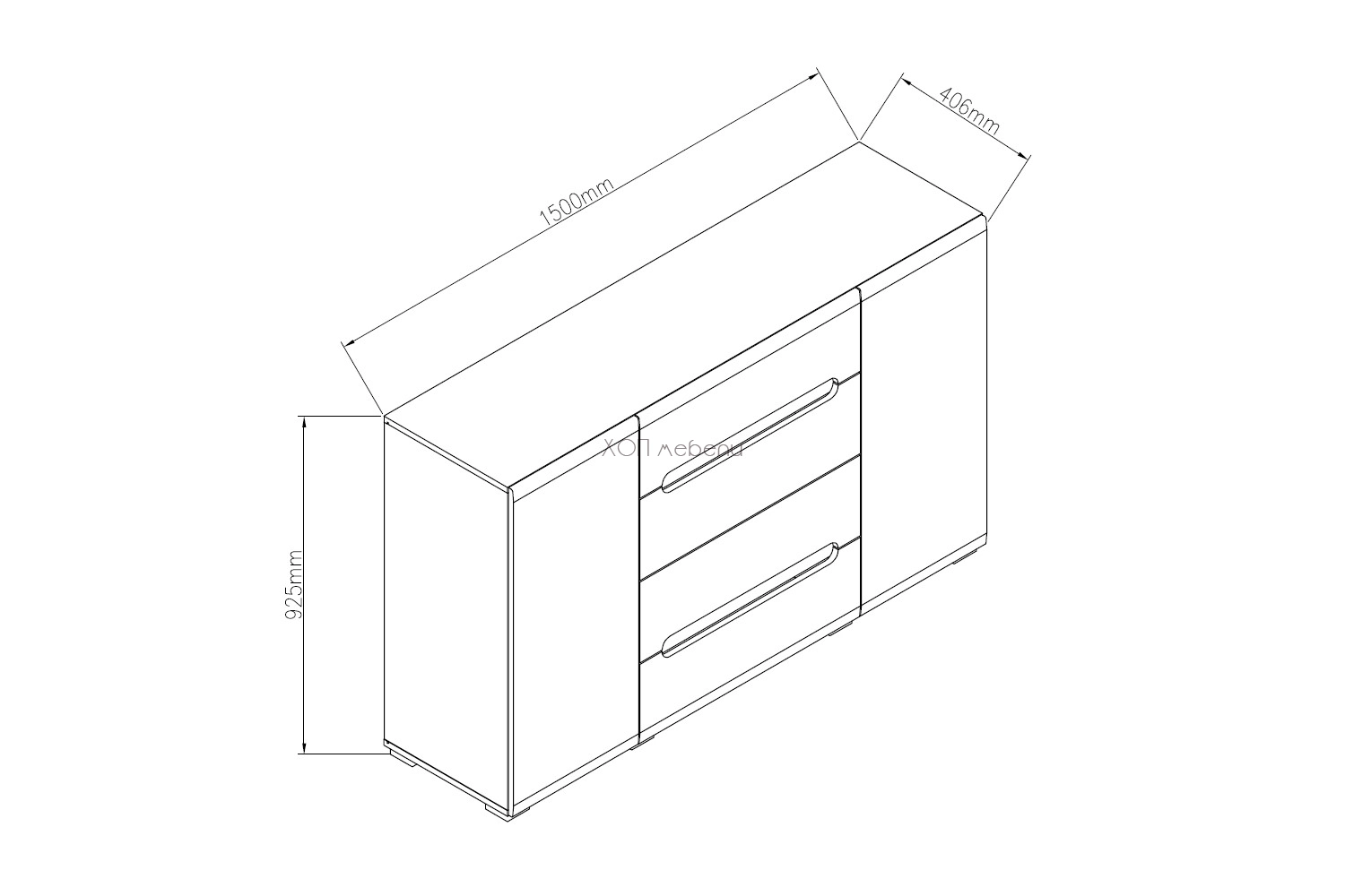 Разпределение с две врати, четири чекмеджета и четири рафта, в които можете да съберете дрехи, лични вещи и козметика.
