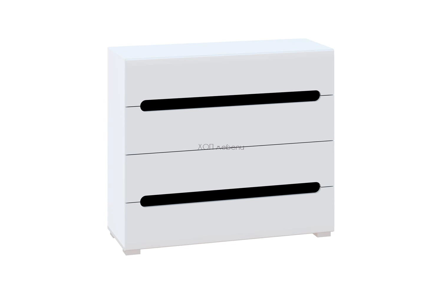 Скрин с четири чекмеджета, част от модулна система за всекидневна Бианко. В модерна комбинация от бял гланц и черно. Светли цветове, които лесно кореспондират с всеки интериор!
