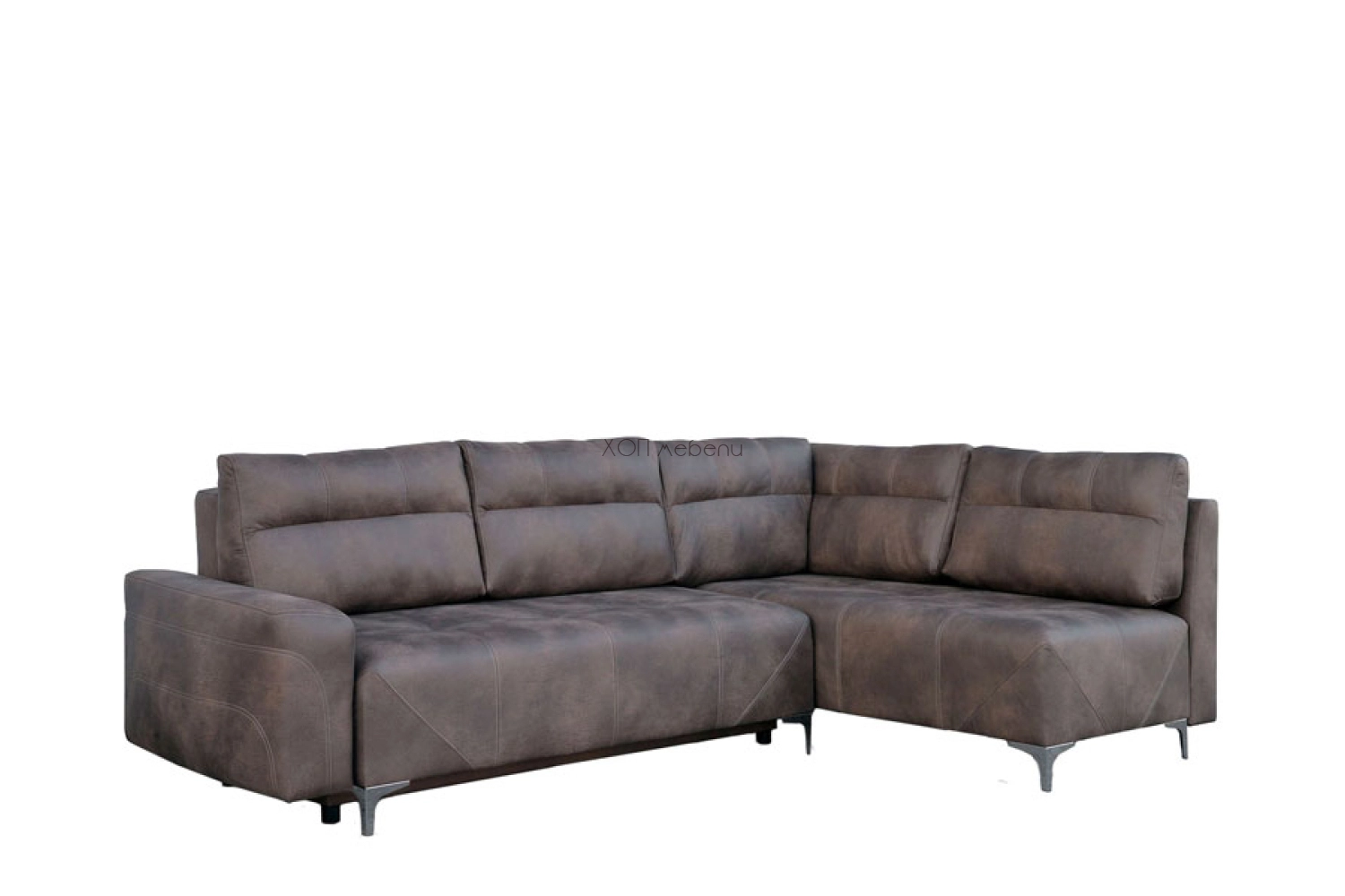 Тапициран ъгъл ПРЕСТО - голям и разкошен в дневната! Впечатляващо голям. С удобна, мека седалка - и за сядане, и за сън. Тапициран в луксозна дамаска. Има 5 големи възглавници и ракла под седалката. Има и голяма табуретка.