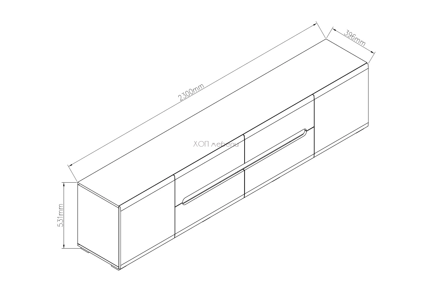 С ширина от 230 см. предоставя достатъчно място за телевизор, мултимедия, документи и дребни вещи.