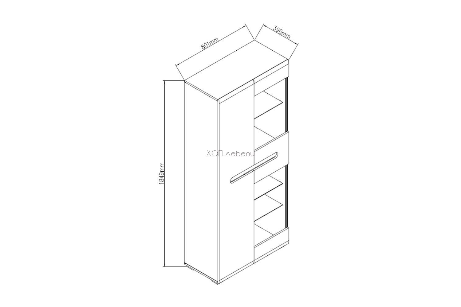 Висок шкаф за всекидневна Бианко 2Д СК е с една плътна врата и една витрина. Чудесно решение за сервизи, сувенири, книги, снимки и документи.