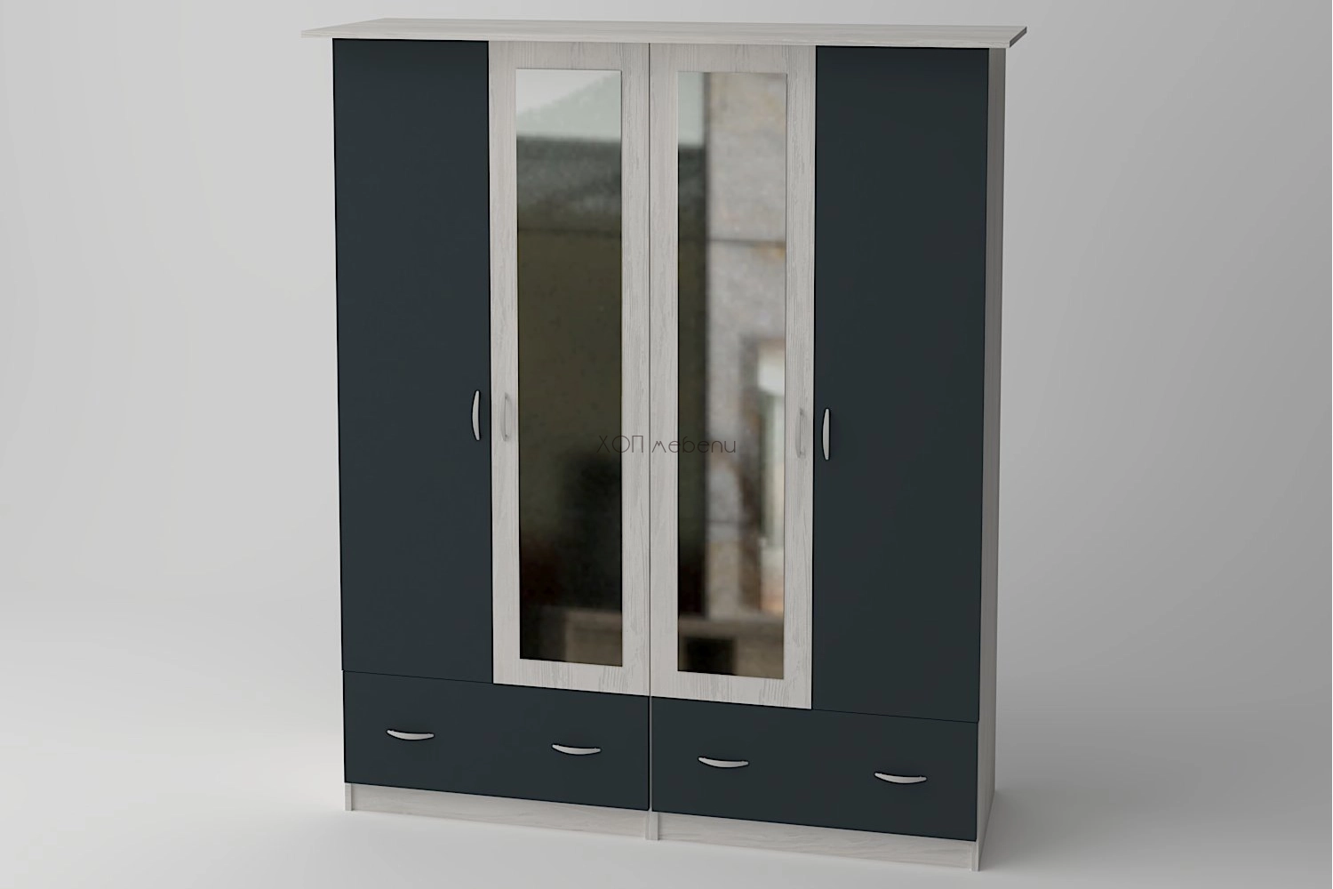- Гардероб с четири врати и две чекмеджета - две крила са с рафтове и две с лост, а в чекмеджетата има място за бельо!
